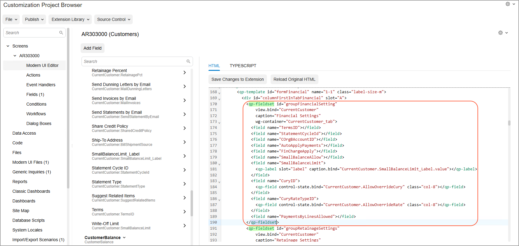 To add a section to a tab of the Customers (CR303000) form, you first need to add it to the list of customized screens. Do the following: