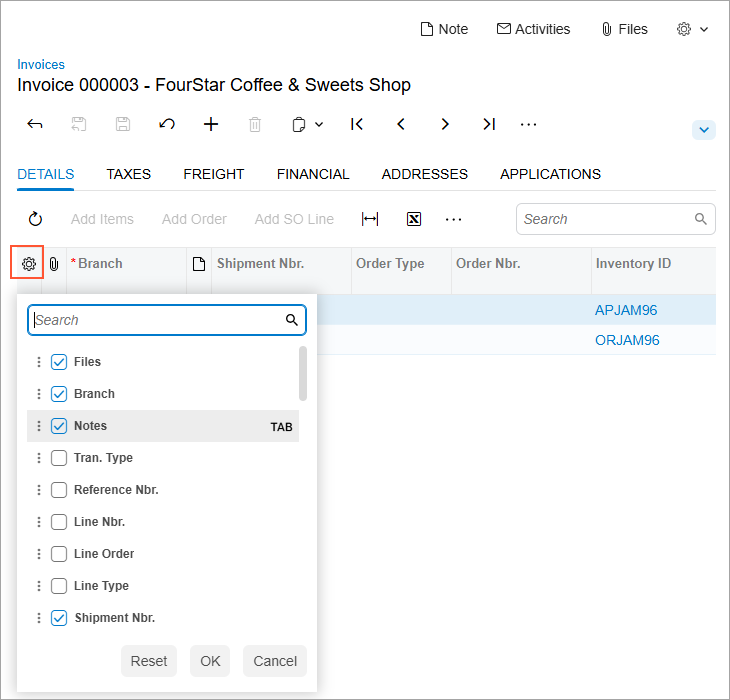 In Modern UI, you can customize the appearance and content of table controls: add or remove visible columns, reorder columns, and change any column's width. Changes to the table would be applied to the personal layout of the form.
