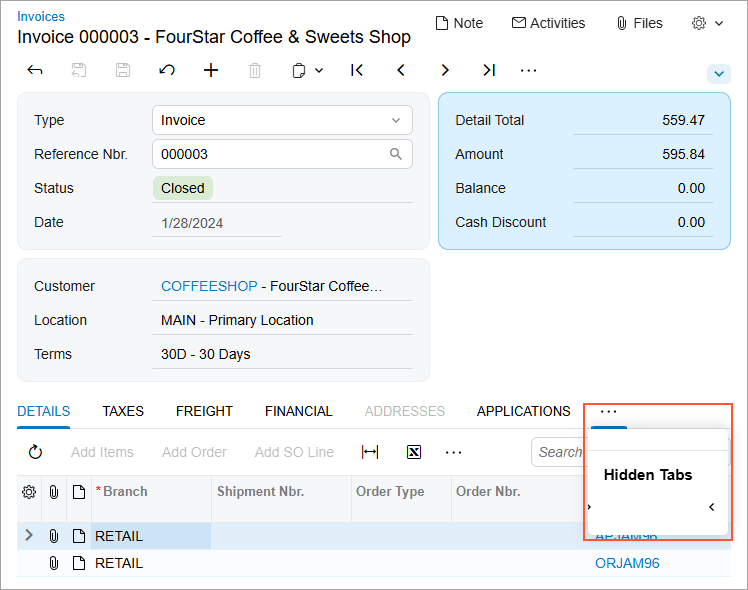 Once a form has been switched to the Modern UI, you can change the order of tabs and hide or display individual tabs. Changes to the tab controls will be applied to the personal layout of the form.