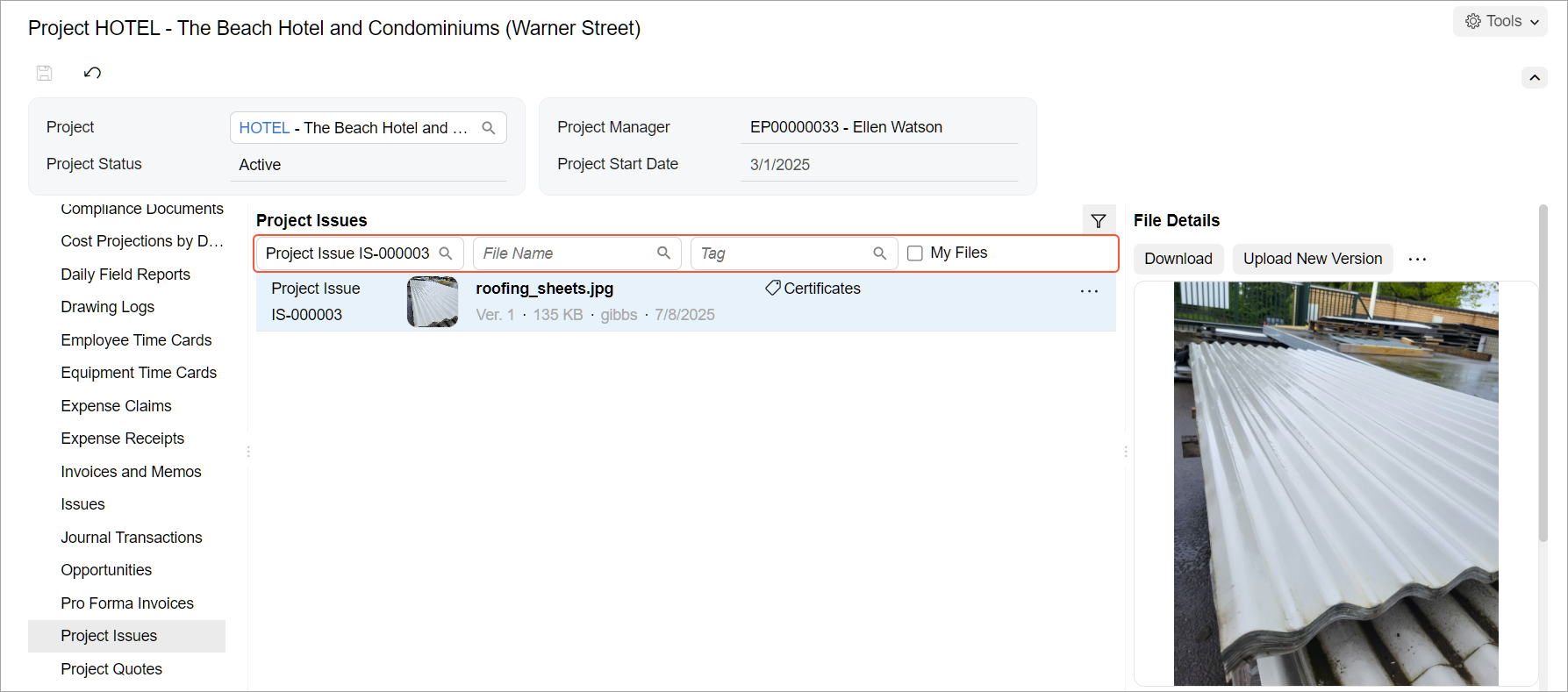 Gone are the days of hunting for project-related files on multiple forms. The new Manage Project Files by Tag (PM509000) form brings together all files attached to a project and its related records in one centralized location. This gives you—and any user with the needed access rights—complete control over your project files.