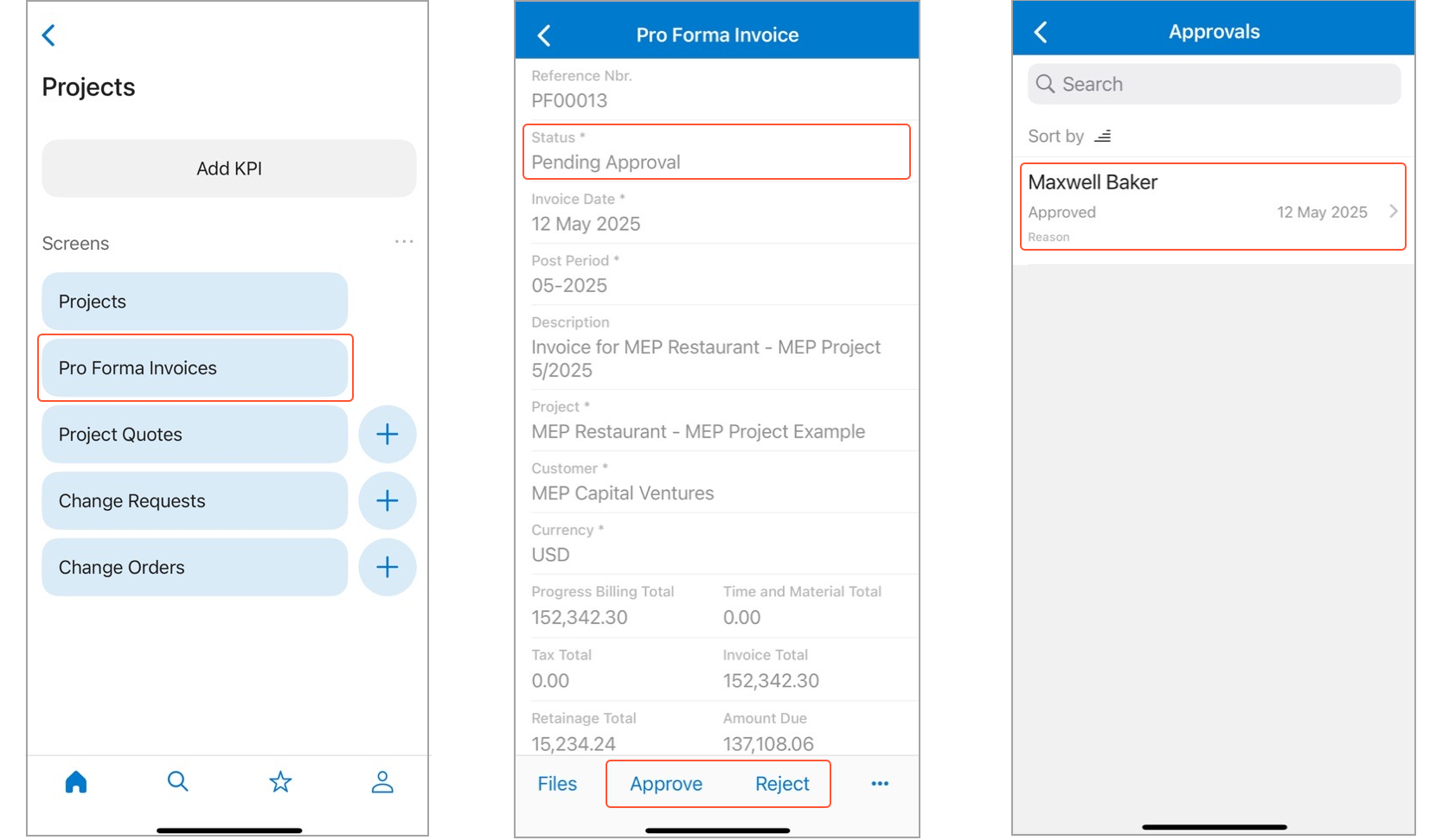 - Review and approve pro forma invoices in one tap to streamline billing workflows and keep projects on track.