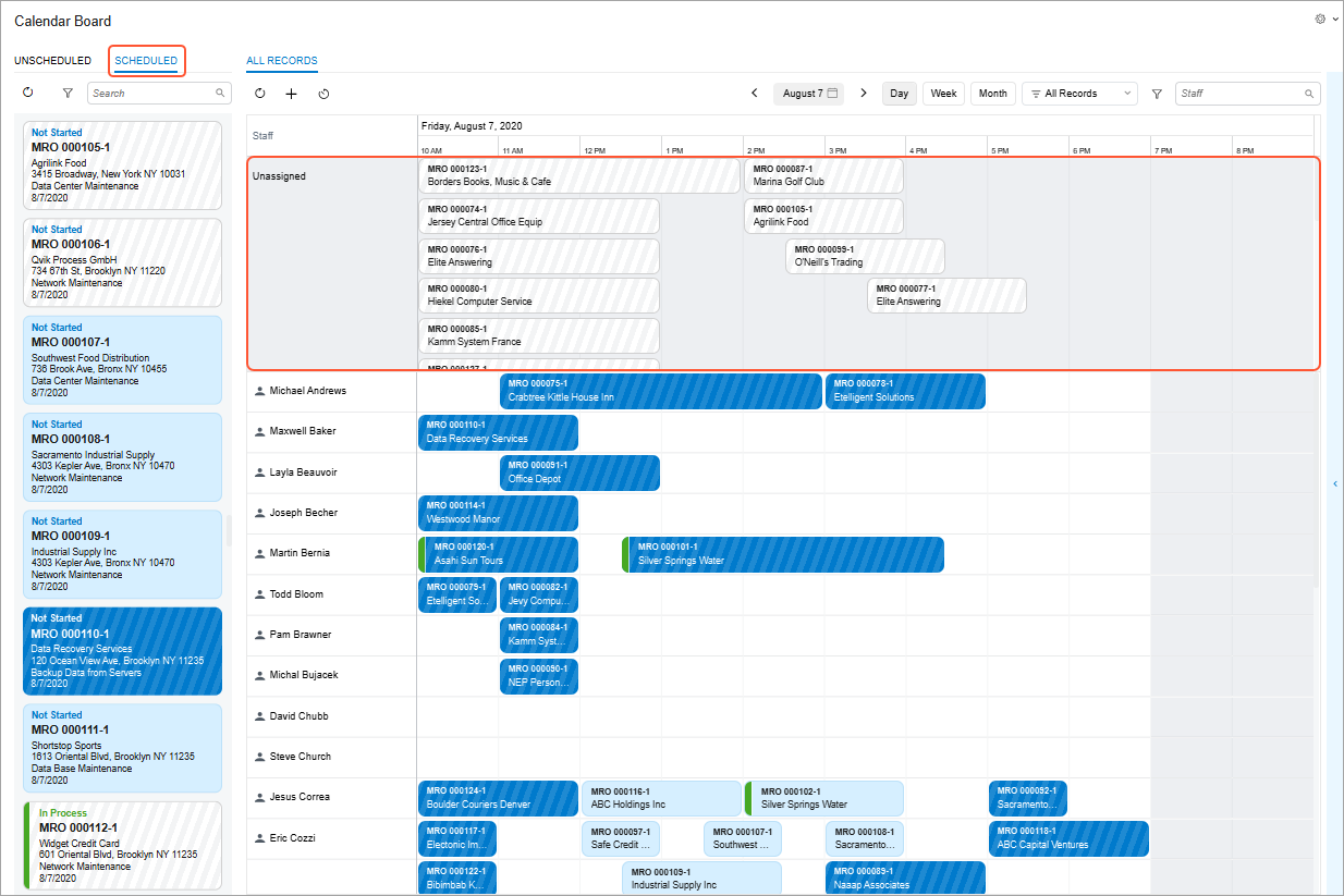 - Unscheduled: All service orders that have not yet been scheduled with appointments