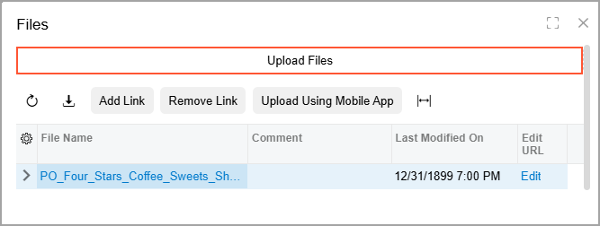 You can open the Files dialog box and upload one or more files to attach to a record in either of the following ways: