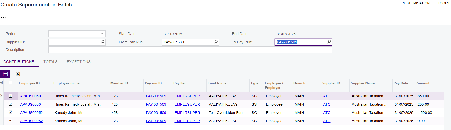 - If you want to create a batch for a certain superannuation company, select a Supplier.