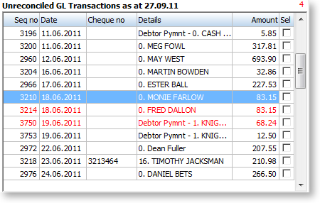 Alternatively select items by left-clicking the mouse while on the appropriate row, and if more than one item is to be selected, then hold down the CTRL key while LEFT-CLICKING. Click the Reconcile button from the toolbar.