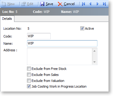 Select if this location is to be excluded from sales screens. Do not allow sales via Sales Orders or normal debtors invoicing from this location. This option should be disabled, so that Debtor invoicing is possible from Job Costing.