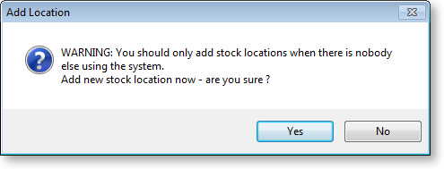 If no unused locations are available, click the New button to add a new location. The following warning message is displayed: