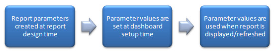Dashboard parameters are very similar to other Clarity parameters, and are used in much the same way. Parameter definitions are stored in a CLS file and retrieved at runtime to produce the report. The parameter values are stored against a Dashboard view setup.