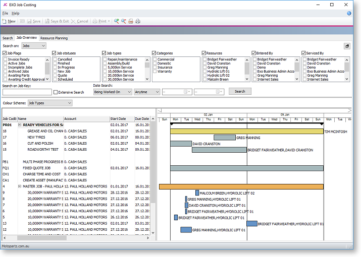 Note: You must set up colours for Job Types, Job Statuses, and Job Categories before using the Job Overview tab.