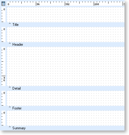 The canvas is the area that contains the report layout. This is where we place the bands (or sections) and components that will ultimately control the content of each page of the report.