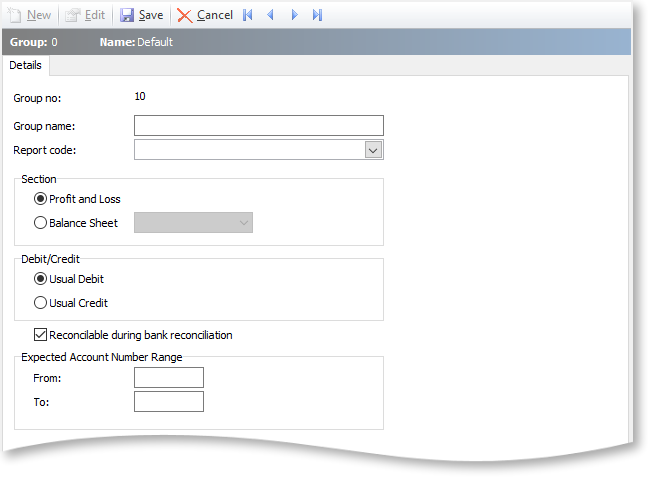 If the new group is to be reconcilable, tick the Reconcilable during bank reconciliation check box.