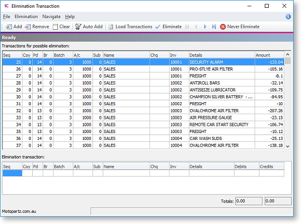 Double-clicking a row in the top grid, or selecting it and clicking Add, transfers the transaction to the lower grid.