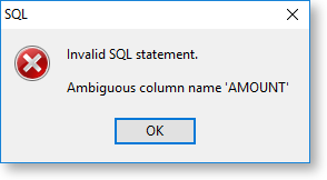 What does the error "Invalid SQL statement, Ambiguous column name" mean?