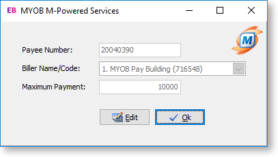 Enter the number that you obtained when you signed up for MYOB M-Powered Services. |