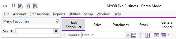 The main window of each module includes a shortcut menu in the title bar: