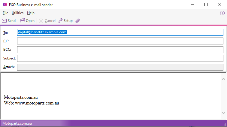 If Exo Business is configured to use the Email Sender, this window displays when you send an email: