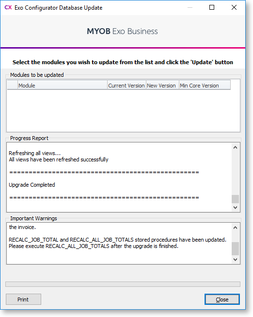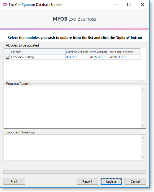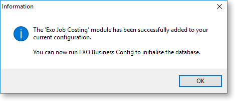 Note: Running Job Costing for the first time creates extra fields and tables in the Exo Business database. Backup your database before running Job Costing for the first time or before upgrading.
