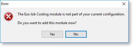 Ensure Exo Business has been set up for use with Job Costing.