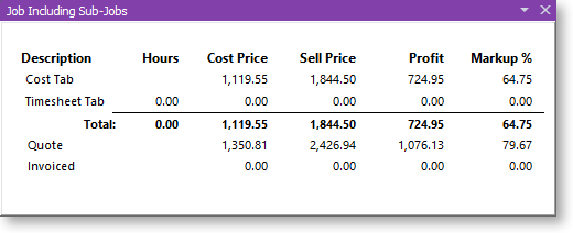 Select the Include Sub Job Lines option on the Quote/Budget, Timesheets, Costs, and Invoices tabs to show lines for all sub jobs in the main grid. Select a sub job to show on the grid from the dropdown list in the Job Code column.