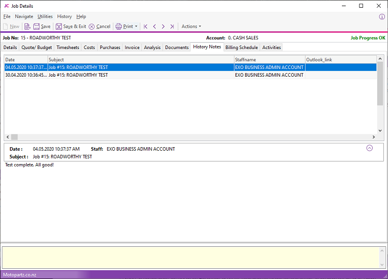 History Notes are documentation about a job. History Note are plain text. They do not support rich text or images.