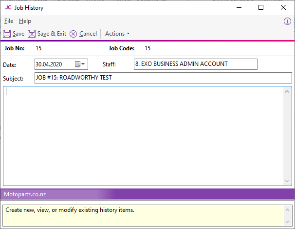 New History Note from the Actions menu to create an entry or double click an existing entry to edit it.