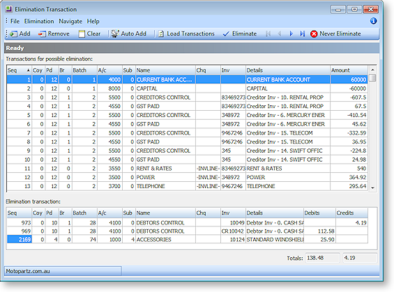 Clicking Auto Add transfers all transactions to the lower grid.