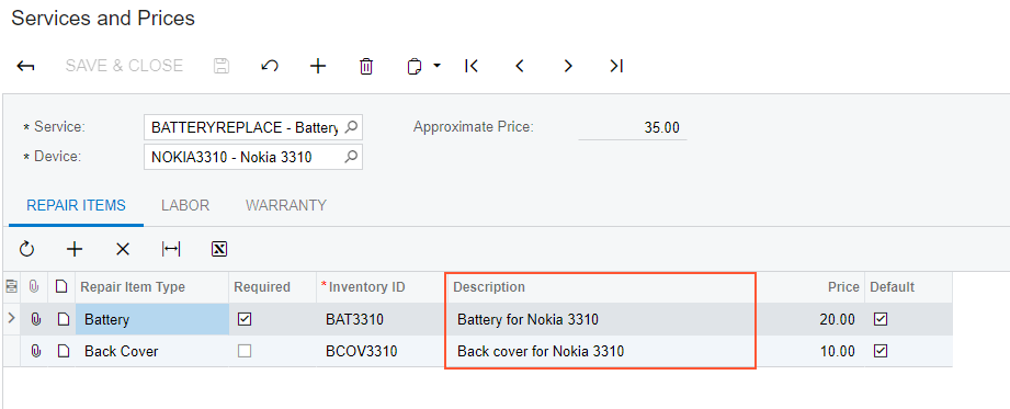 - What do we mean when we say the service item has a corresponding STOCK item> I thought service items were (not has a corresponding) non-stock items? Or are you talking about the fact that each service item has MULTIPLE stock items (repair items) associated with it? This is really confusing.