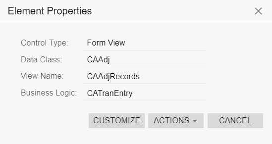So, for the Transactions form, you need the CAAdj DAC as shown on the following screenshot.
