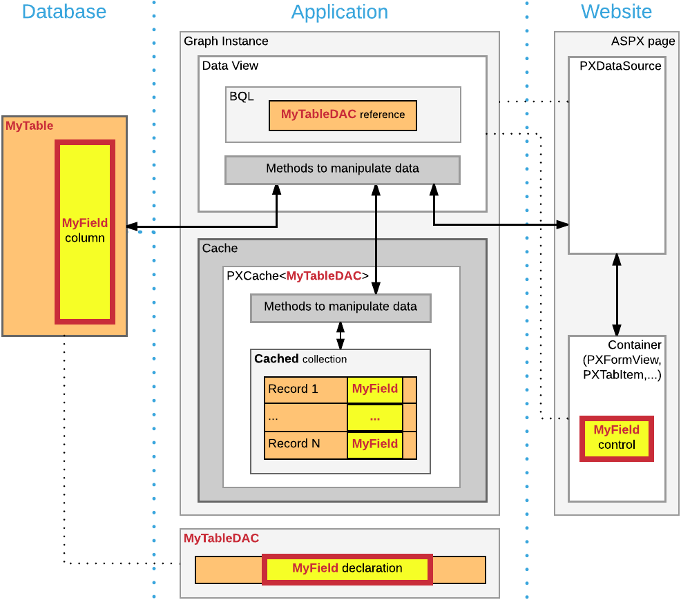 - Add a data field to the code of the appropriate DAC (the functional customization step)