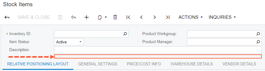 Suppose you have to add the new Search Keywords text box to the Stock Items form to the location shown on the screenshot.