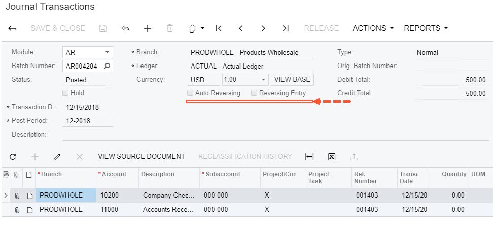 of the GL Batch DAC) below the Auto Reversing check box.Figure 1. Viewing the original form
