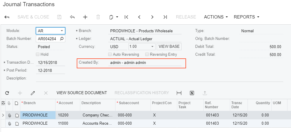 The screenshot below illustrates the original Journal Transactions (GL301000) form. Suppose
