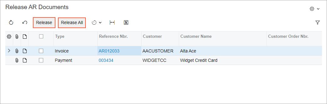 the Release AR Documents (AR501000) form,