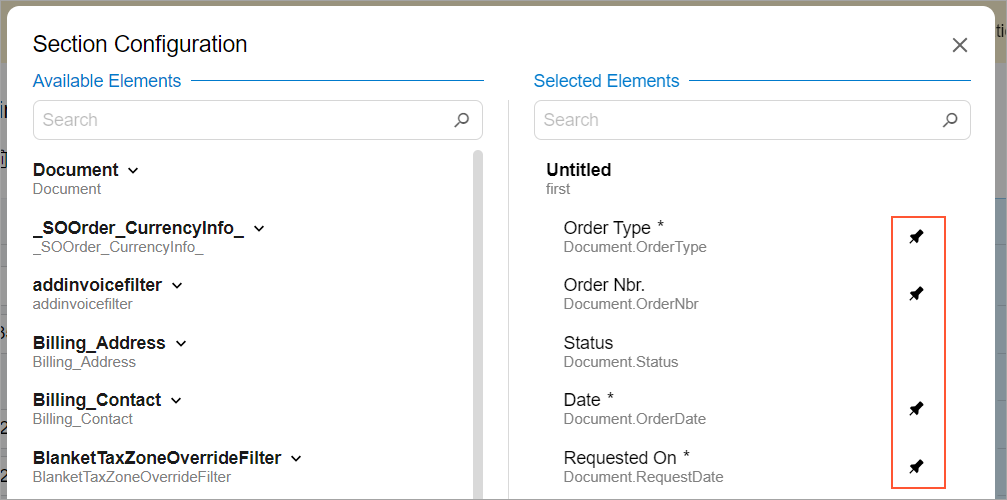 When a part of the form is collapsed, only the pinned elements are displayed.