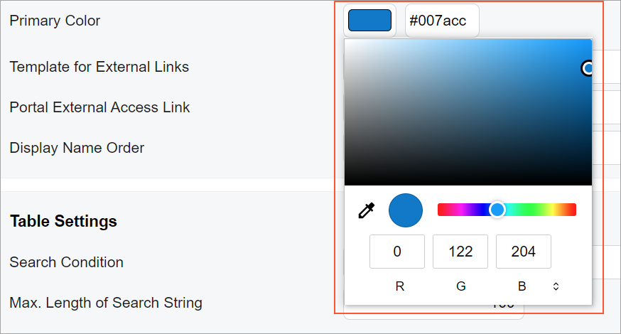 - The proper configuration of the color picker control