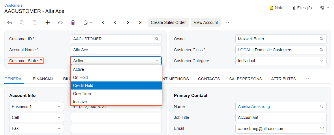 | Use a noun or a noun phrase to describe the contents of a combo box. Preferably, combo box names should consist of one or two words. | The Customer Status combo box on the Customers (AR303000) form, which is shown in the following