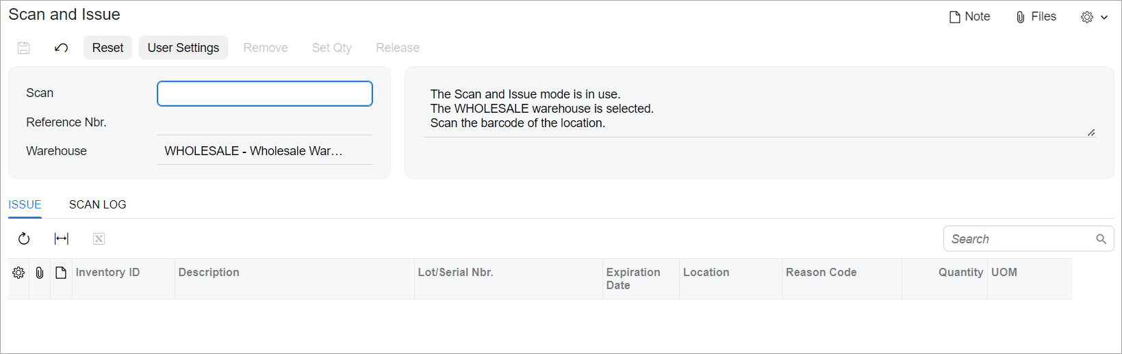 | Use a name that is as short as possible while maintaining clarity. That is, the tab name should clearly distinguish the tab’s content from the content of other tabs on the form. | The Issue and Scan Log tabs on the Scan and Issue (IN302020) form, which are shown in the following