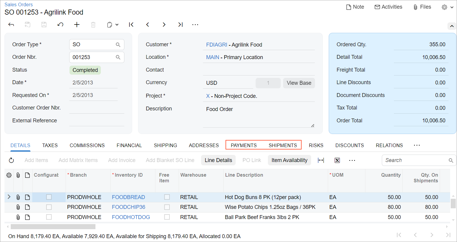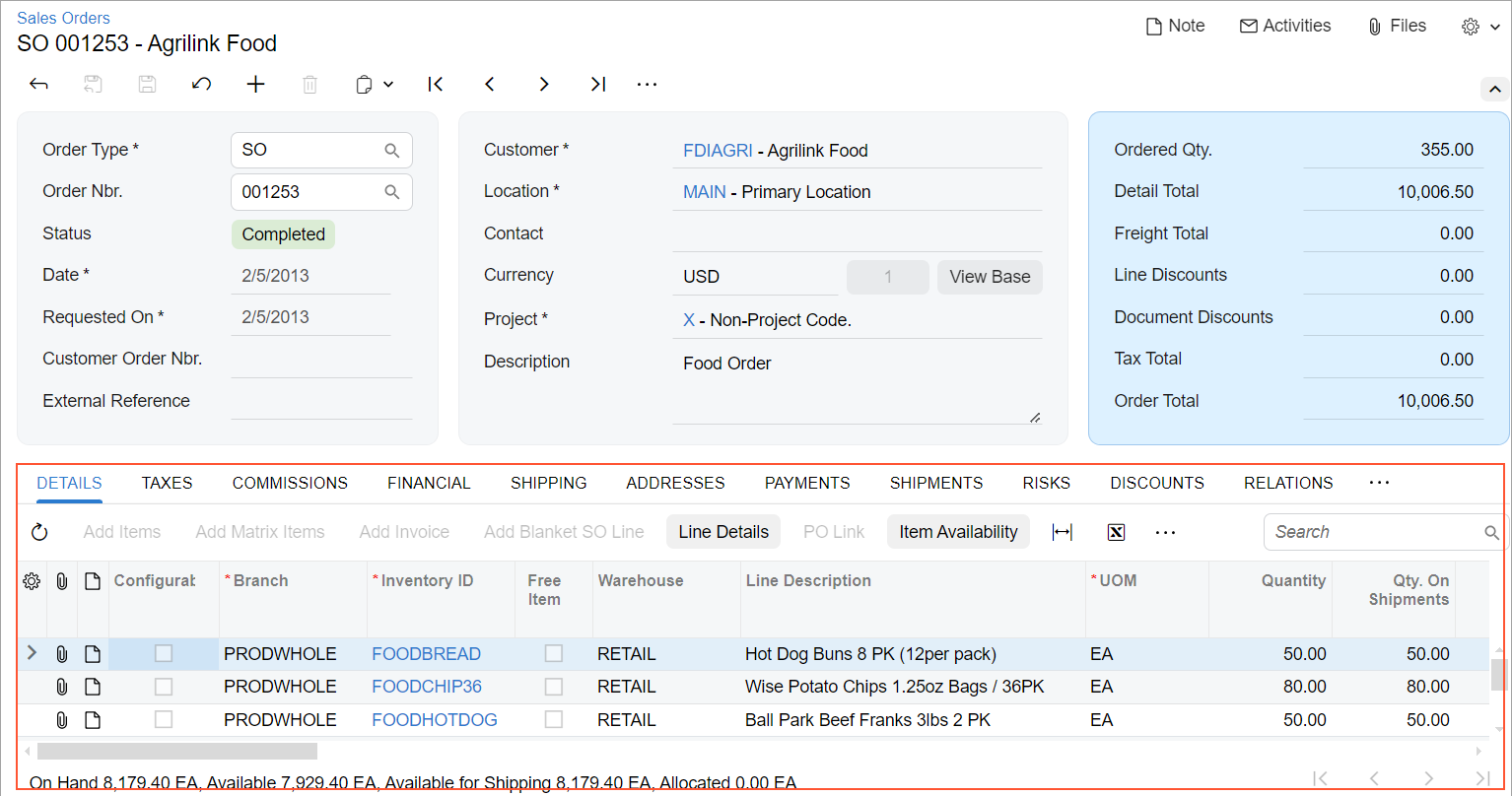 Sales Orders (SO301000) form, which are shown in the
