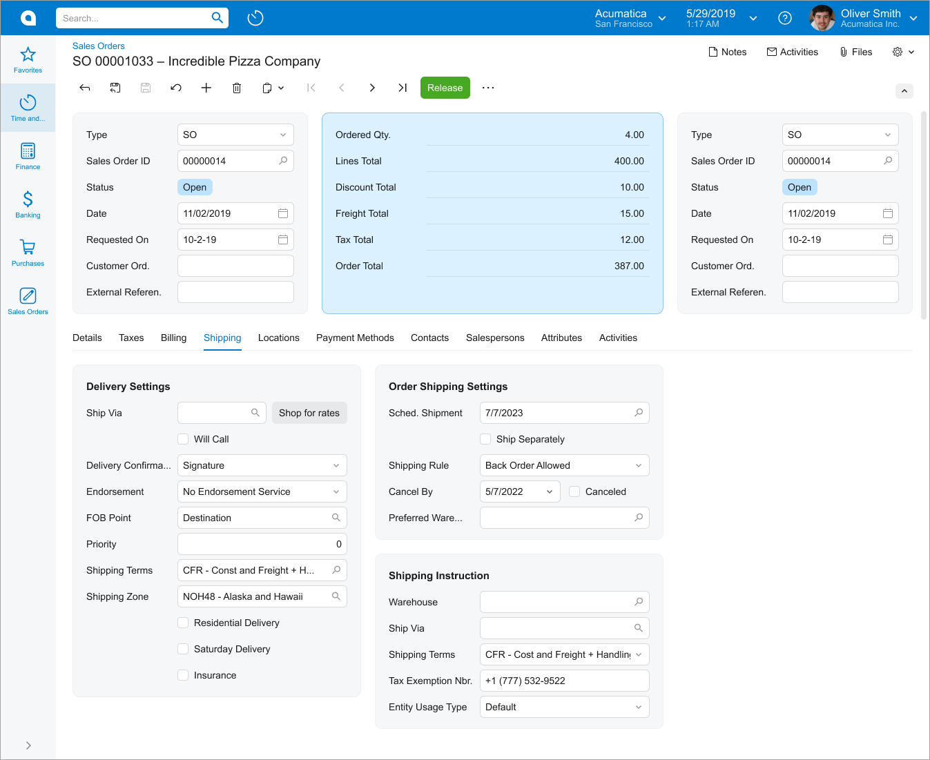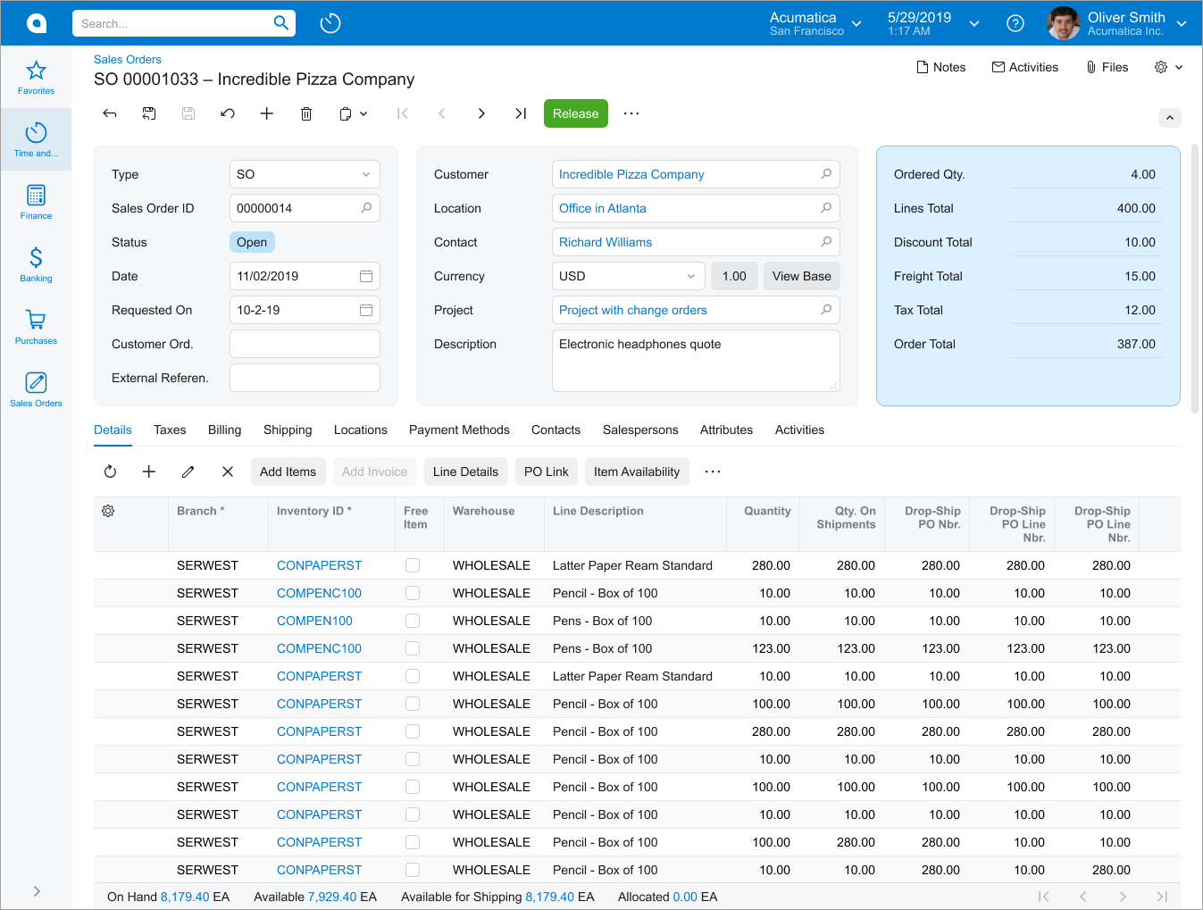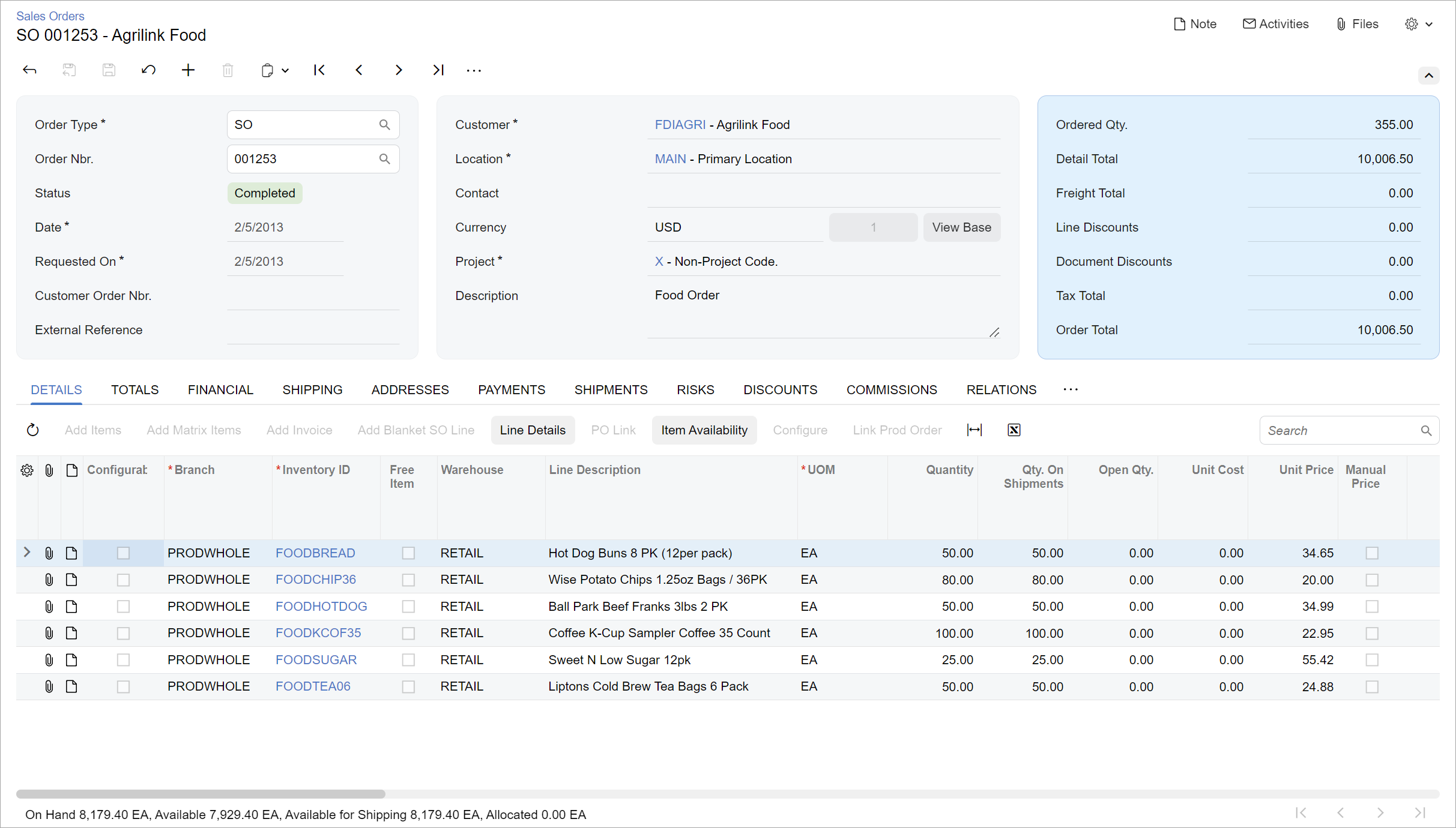 The following screenshot shows an example of a data entry form. As is true of most data entry forms, the displayed form has a Summary area and a tab area with multiple tabs. The displayed tab shows a table (generally referred to as a grid).