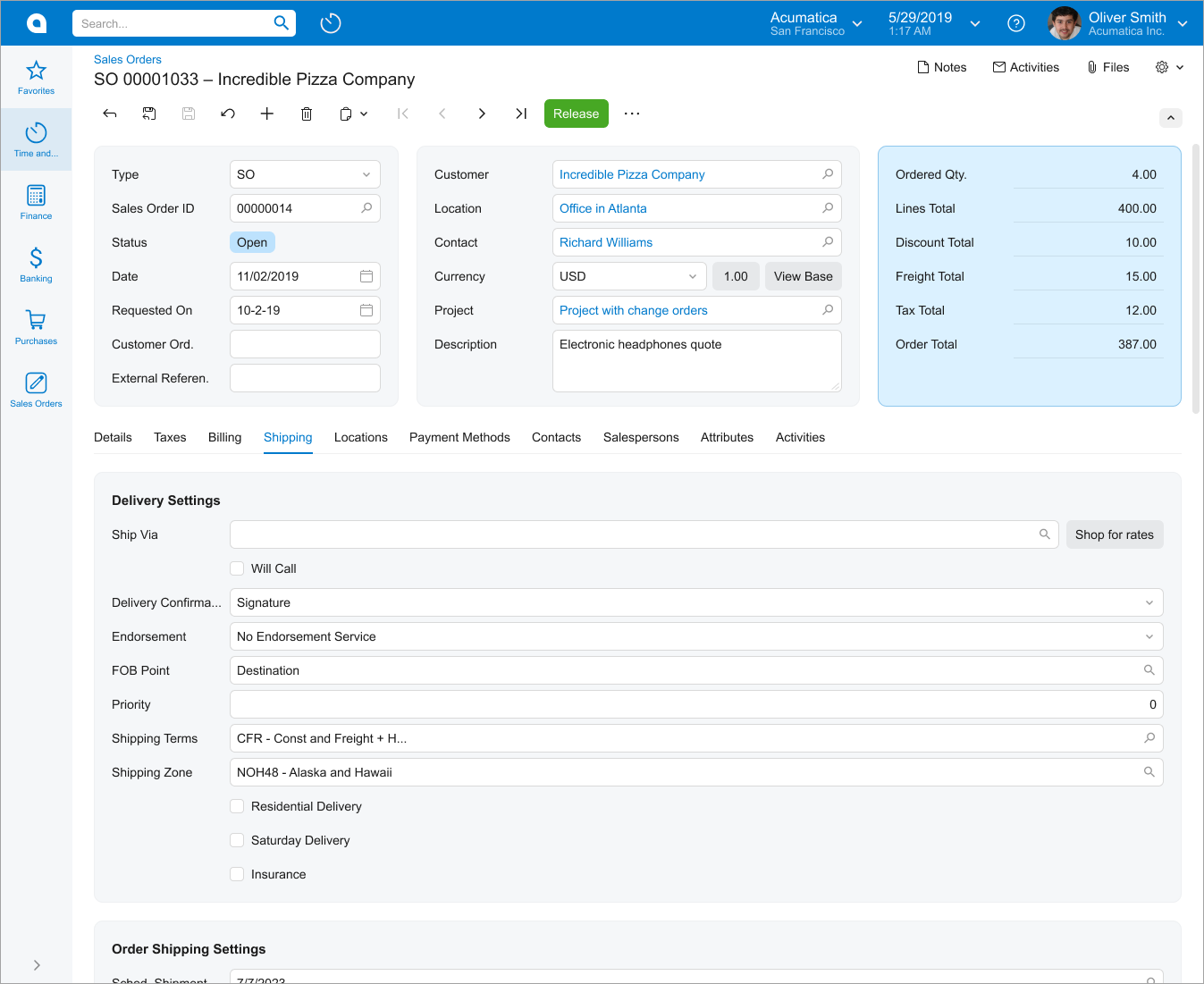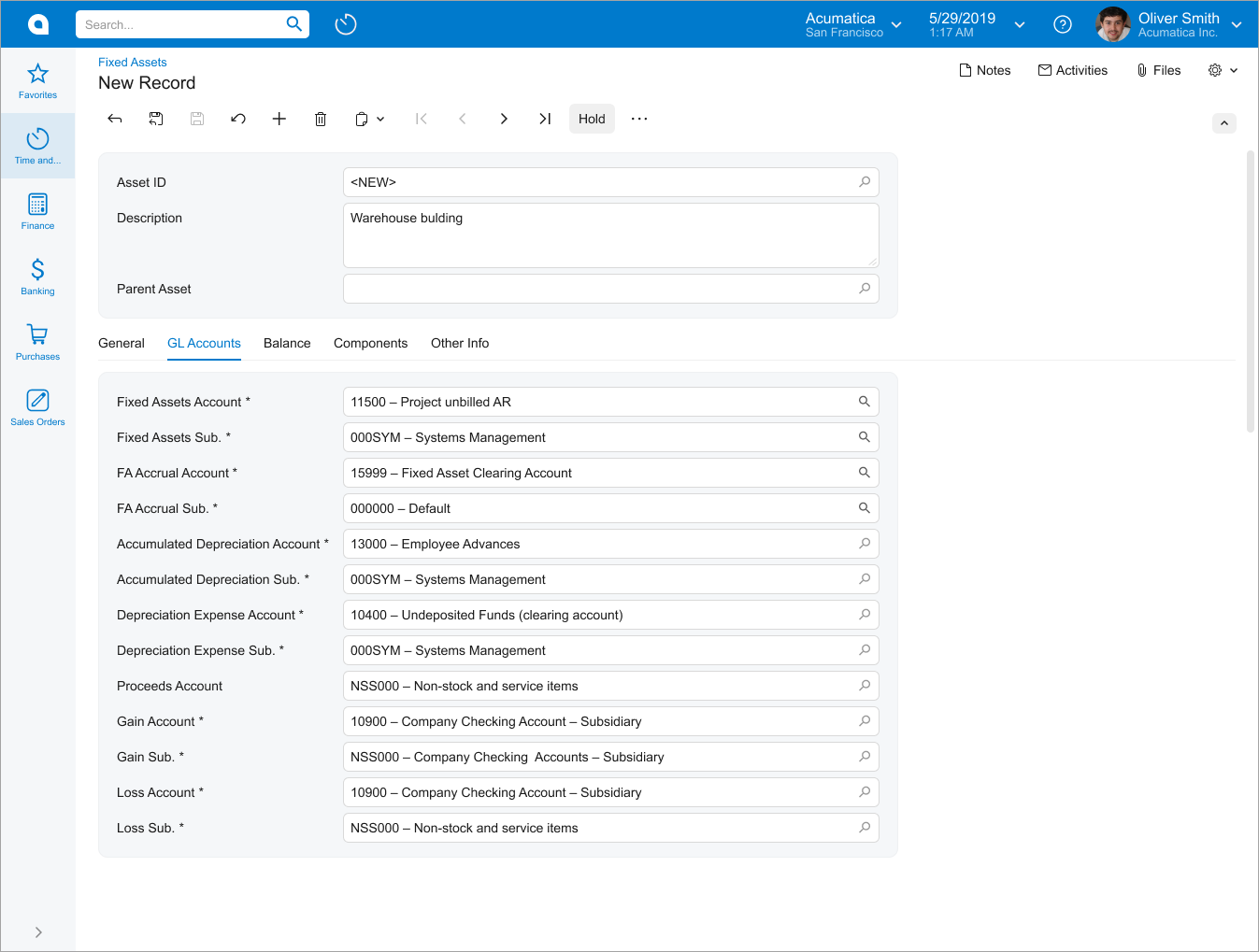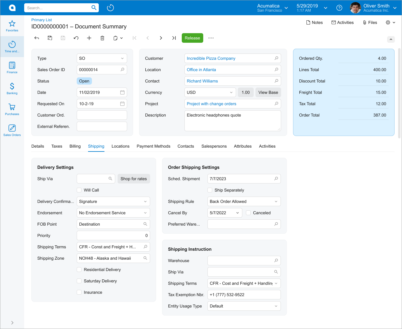 The following screenshot shows an example of a data entry form. As is true of most data entry forms, the displayed form has a Summary area and a tab area with multiple tabs. The displayed tab shows a table (generally referred to as a grid).