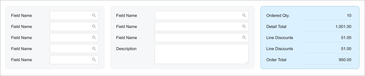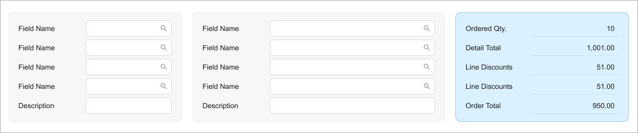 Data entry forms that display transactional data, such as Invoices and Memos (AR301000), should use three-column templates for the Summary area. You can select a particular template by the general recommendations below. You use the default label size.