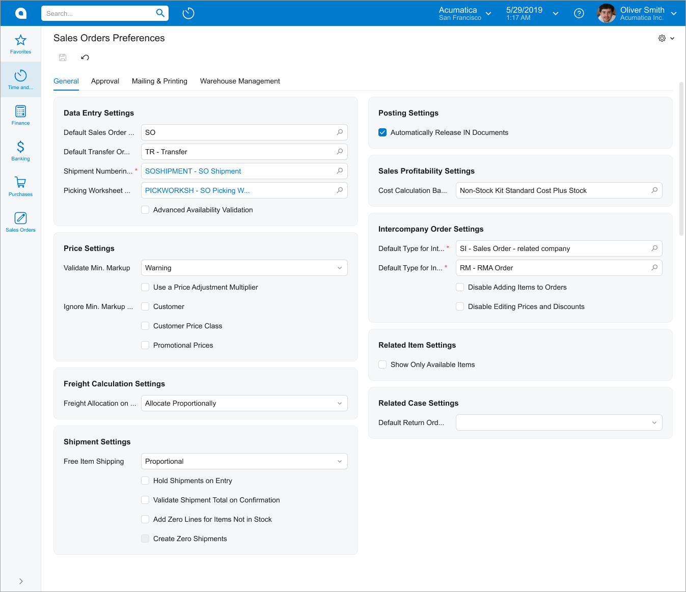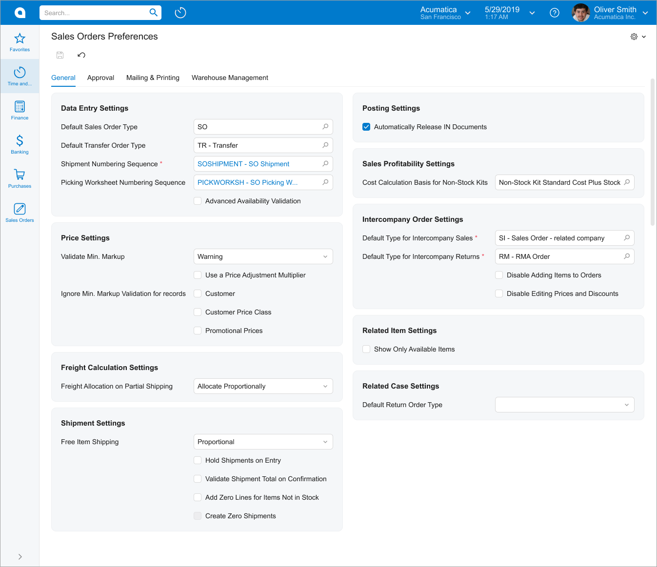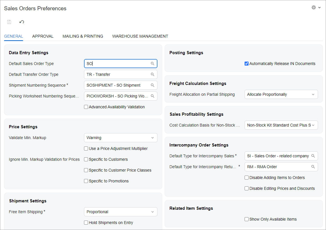 On a setup form, an administrator provides configuration or maintenance settings for some functionality in the instance. In the MYOB Acumatica workspaces, setup forms are typically listed under Preferences. This topic provides recommendations and guidelines on organizing the layout of a setup form.