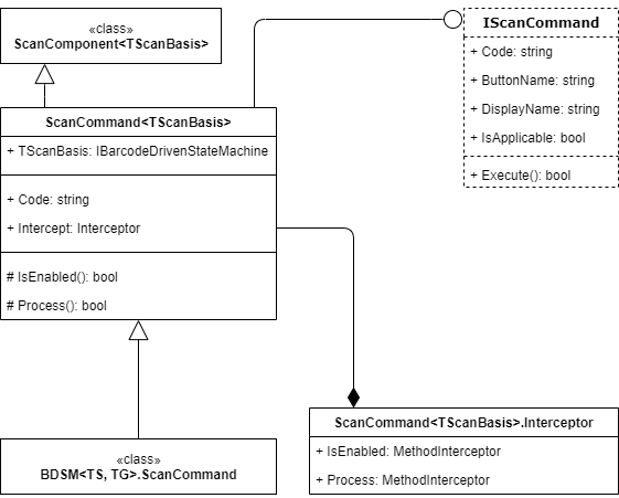 A barcode scan command is a piece of logic that can be executed in any scan state either by clicking a button associated with this command in the UI, or by scanning a fixed barcode associated with it. For example, this logic can change the current state of the barcode-driven engine or start a long-running process.