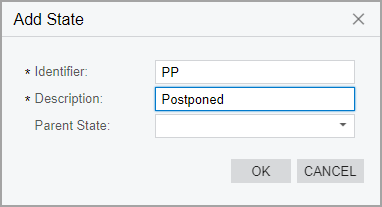 - In the Add State dialog box, which opens, specify the