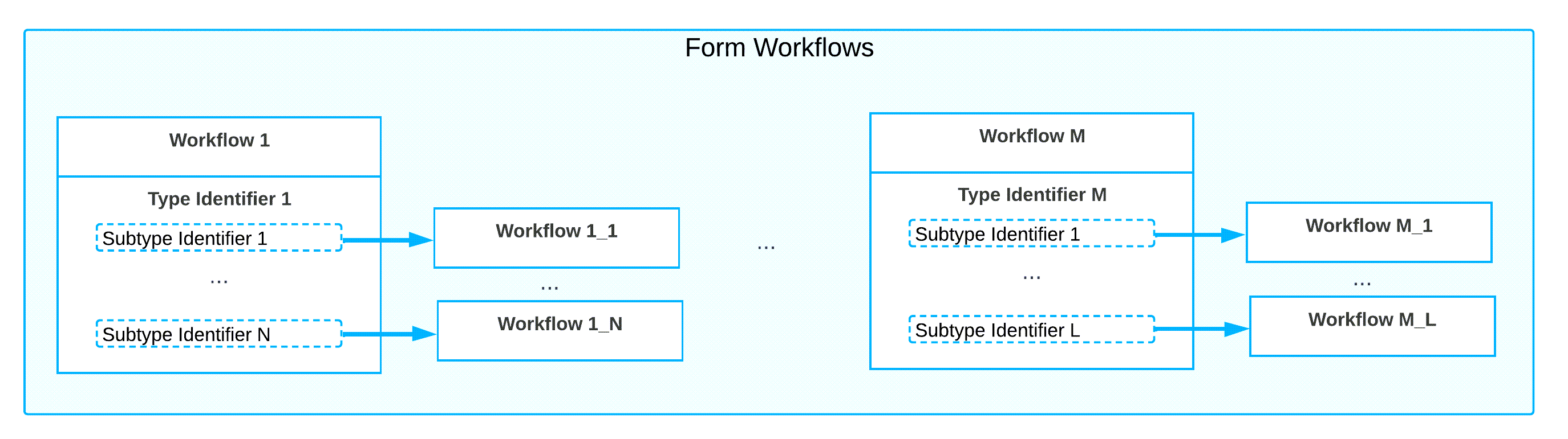 If for a form, a developer has specified a type identifier for a workflow in the code (by using Workflow API), then you can select a workflow-identifying field of the second level for this form. [4]Is this the sort of phrasing we might use in our definition of second-level identifiers?2023/08/3117:18:49-04:00As a result, you can create a workflow for each pair of the type identifier value and the subtype identifier value. This functionality provides greater flexibility for the creation of workflows.