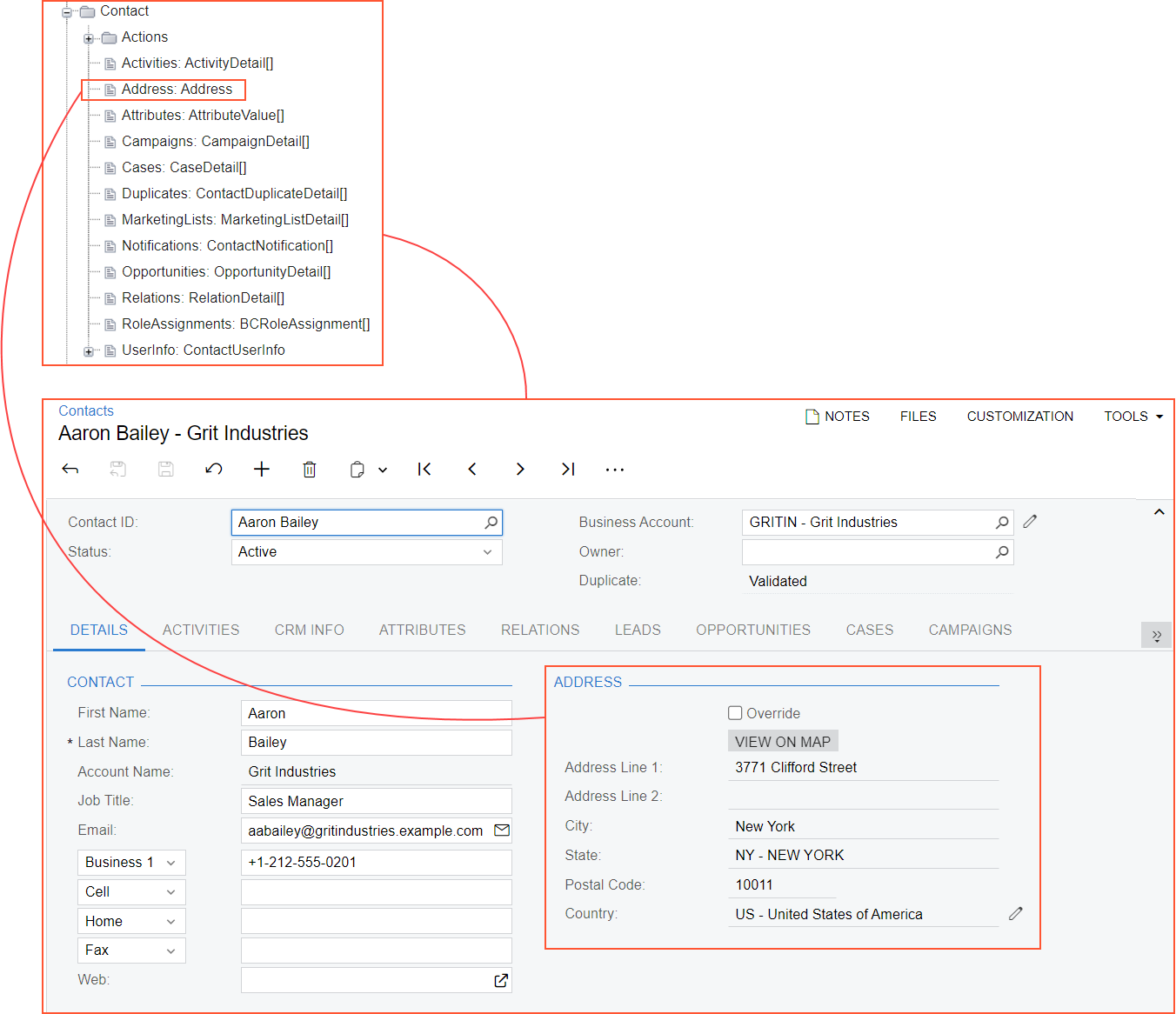 entity usually corresponds to a part of an MYOB Acumatica form and is related to one top-level entity of the contract or multiple top-level