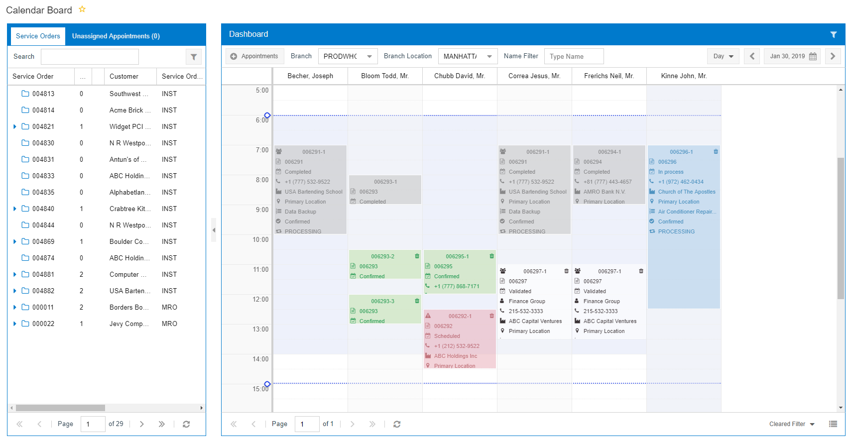 | Edit | Opens the Appointments (FS300200) form with the selected appointment, so you can view its details and modify it. |