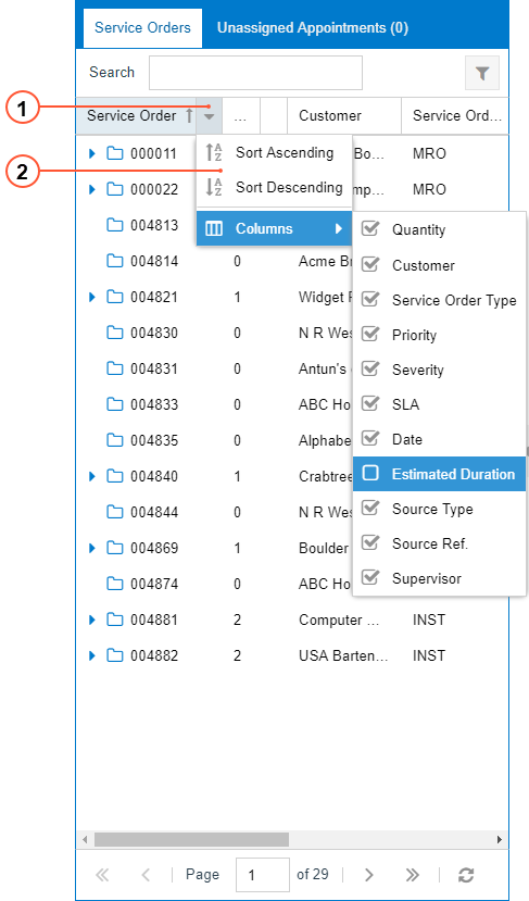 To open the Column Configuration dialog box, click the Column Configuration button (the arrow right of each column), as shown in the following screenshot.