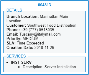 If you double-click a row with a service order or appointment, the system displays key details of the service order (shown in the following screenshot) or appointment.
