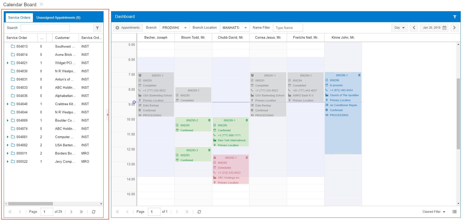 Service Order and Unassigned Appointments Pane